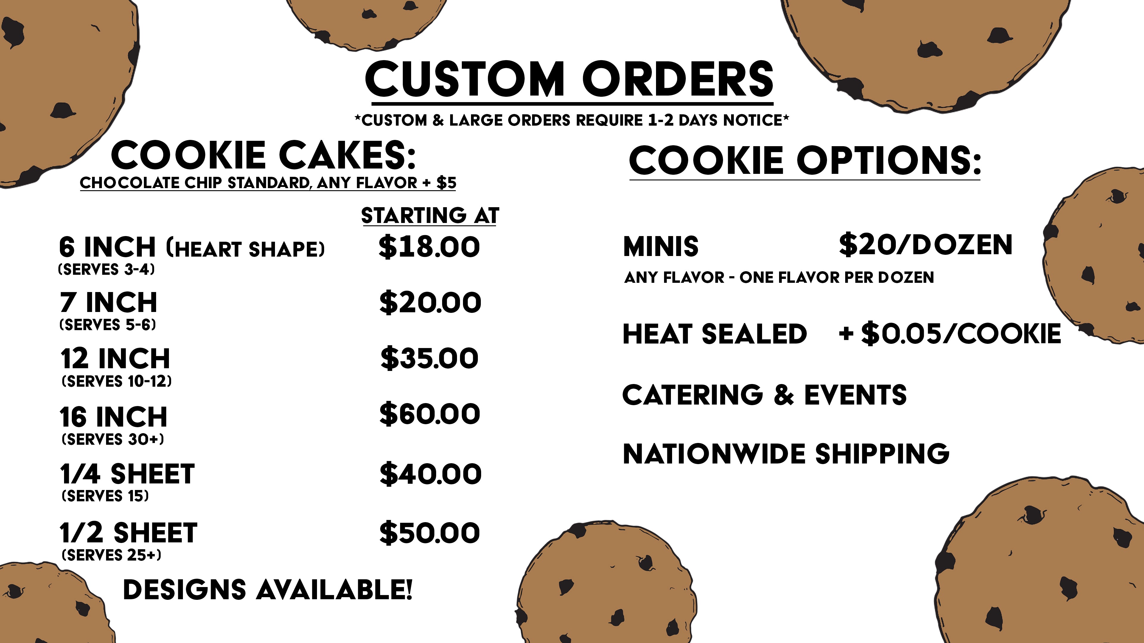 1-2 DAYS NOTICE IS REQUIRED, GLUTEN & DAIRY FRIENDLY OPTIONS ARE AVAILABLE!